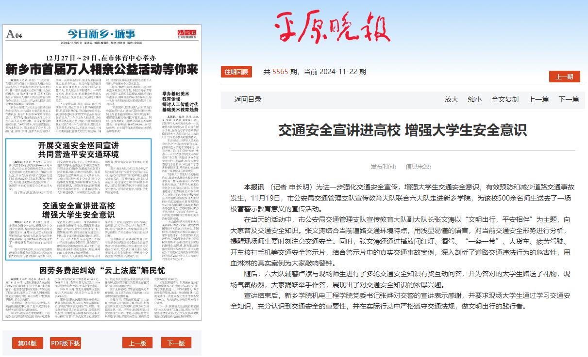 上一条:大象新闻 文旅中原报道raybet官网举办“文明出行 平安相伴” 交通安全宣讲活动 下一条:新乡日报报道raybet官网举办“文明出行 平安相伴” 交通安全宣讲活动